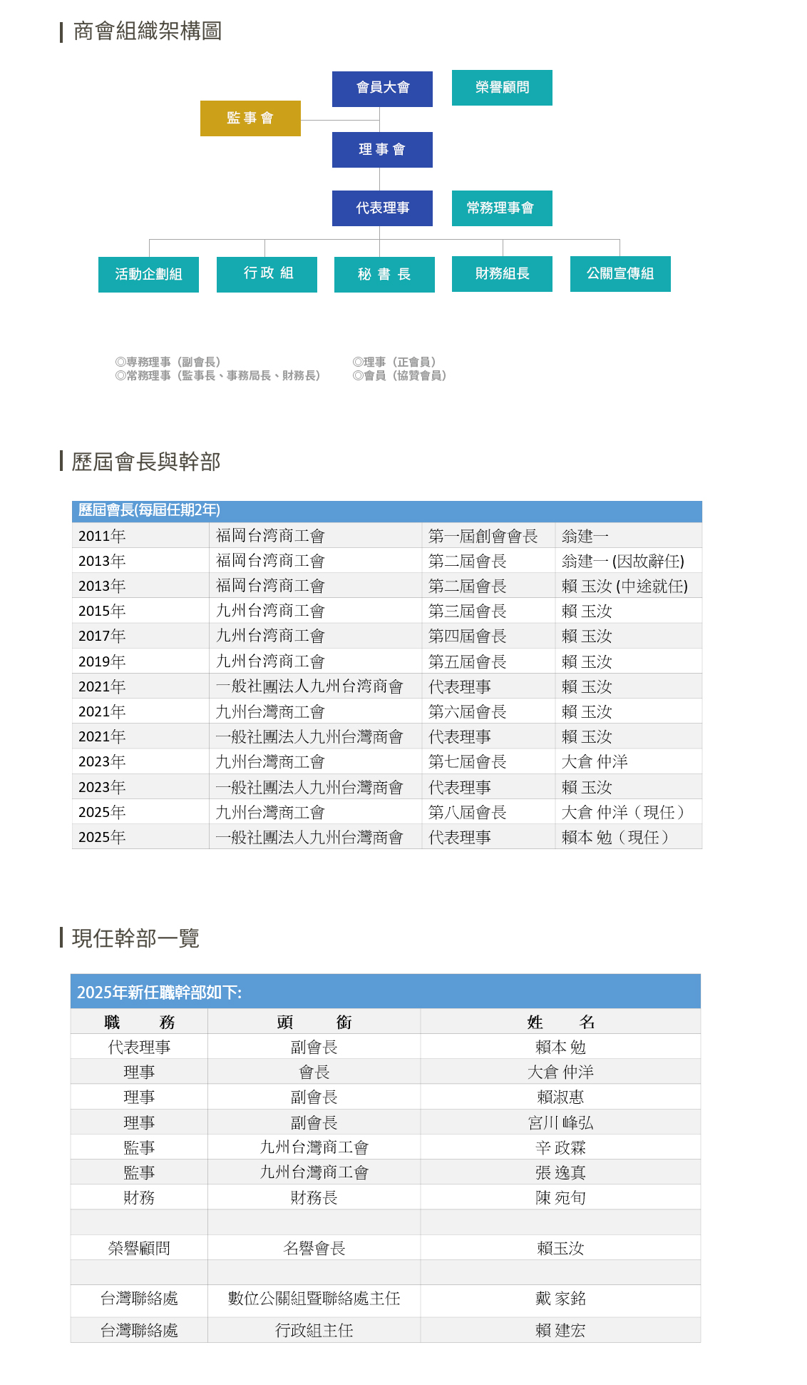 歷屆會長與幹部