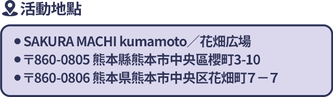● SAKURA MACHI kumamoto∕ ● 〒860-0805 熊本縣熊本市中央區櫻町3-10 ● 〒860-0806 熊本県熊本市中央区花畑町7−7